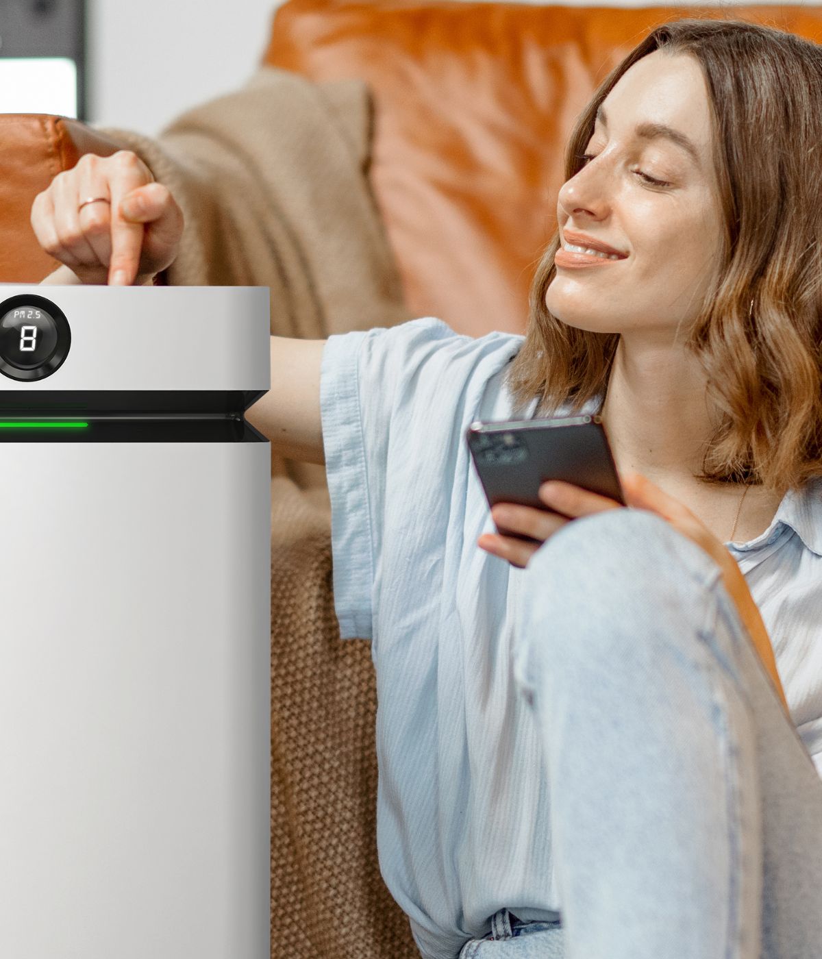 Die intuitive Benutzeroberfläche mit Touchpanel ermöglicht eine mühelose Bedienung. Ein integrierter Luftqualitätssensor zeigt Ihnen stets die aktuelle Luftqualität an. Über die Smartphone-App lässt sich der Airdog X1D zudem bequem aus der Ferne steuern.